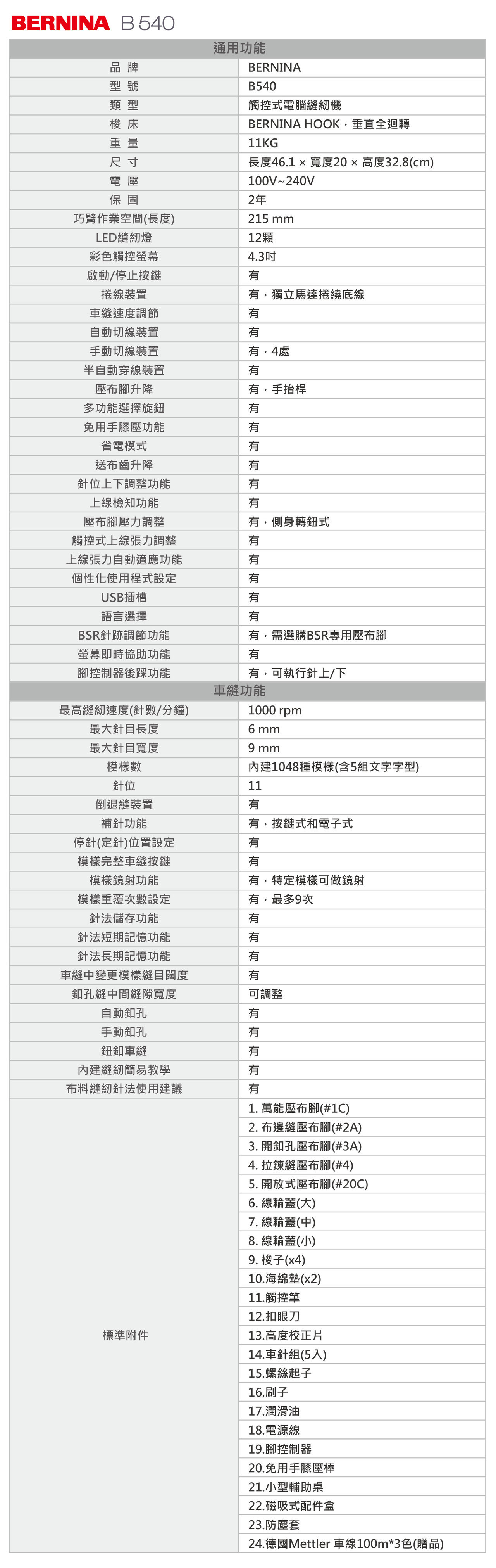 【BERNINA】B540 高階電腦縫紉機
