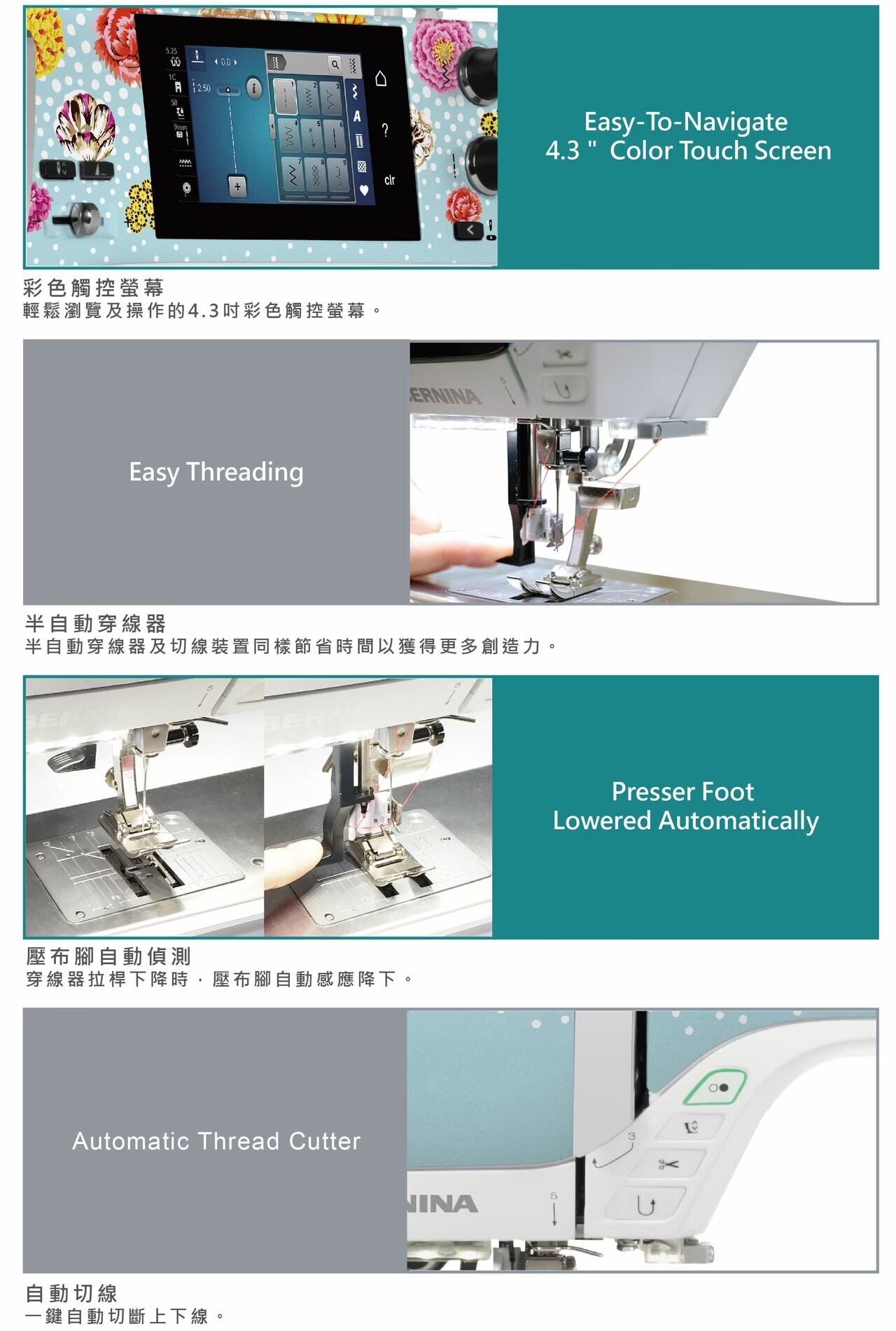 ★「購買BERNINA縫紉機贈捌伍添第餐點」活動詳請請洽詢SED團隊。