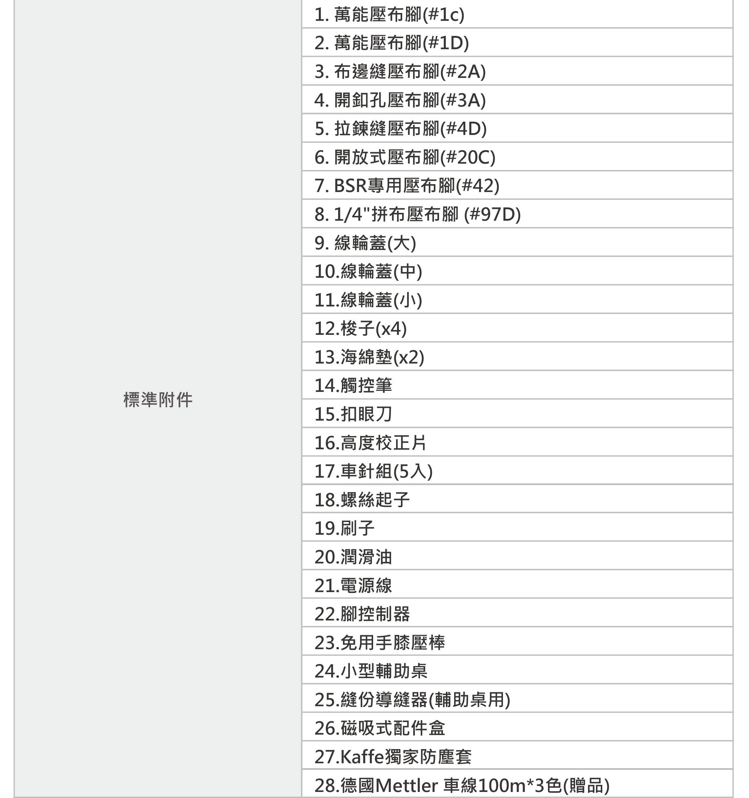 • 標配97D拼布專用壓布腳:可以完美精確地以1/8"(3mm)、1/4"(6mm)和1/3"(7.5mm)的縫份拼接布塊。