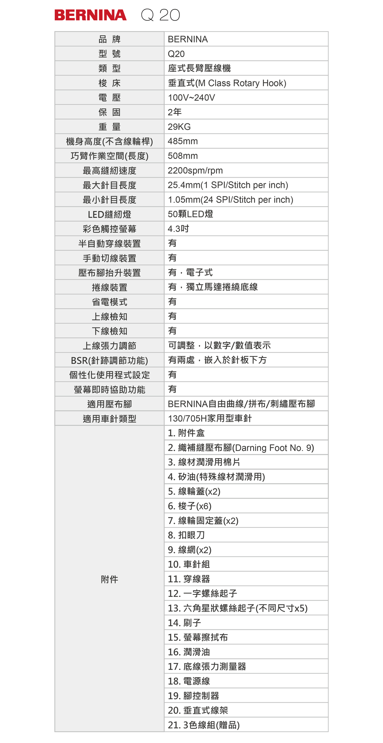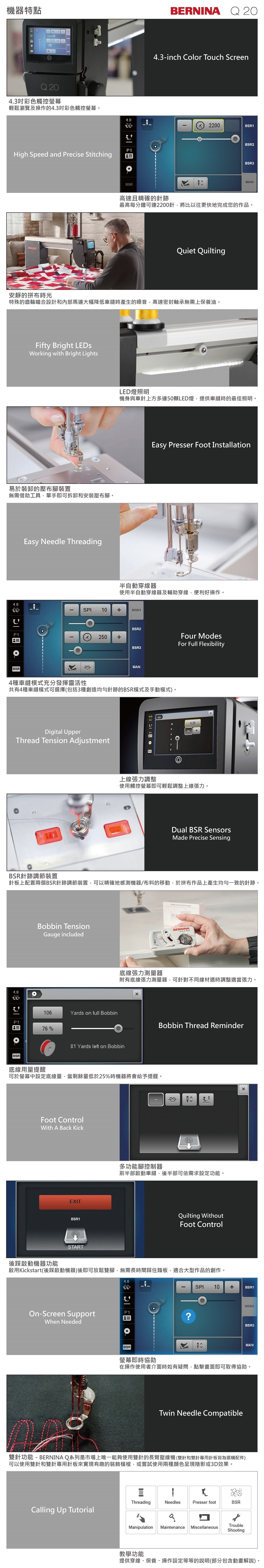 【BERNINA】Q20 Sit-Down Longarm Machine 座式長臂壓線機