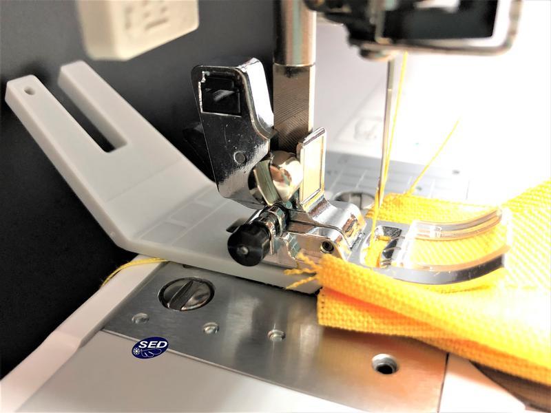 可以使用補正的輔助板撐住讓送布齒在送布時壓腳可以確實的壓平並順利送布。