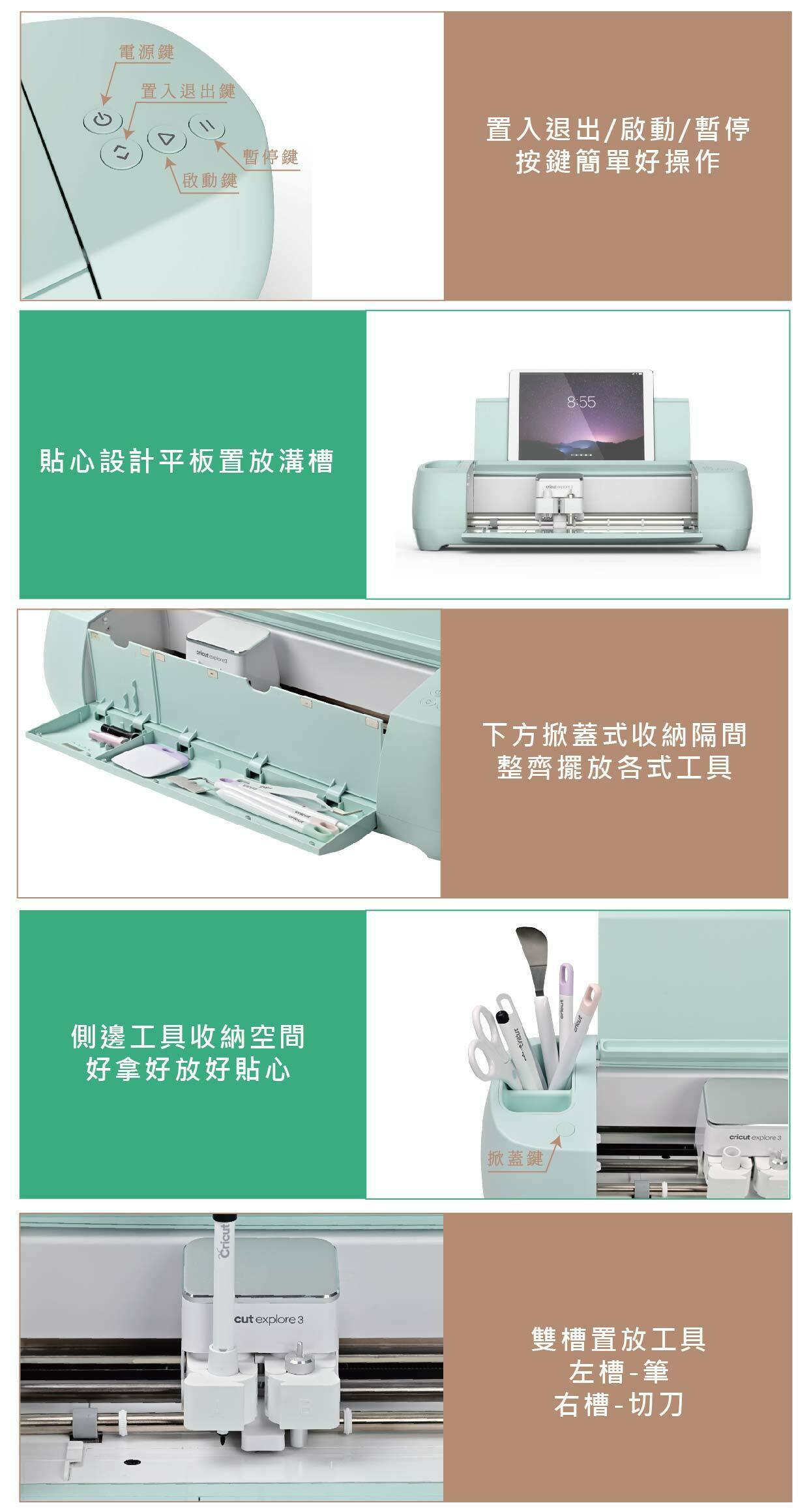 從膠膜、燙印紙到卡紙和軟木製品,Cricut Explore™ 3 可與 100 多種材料相容,以驚人的速度與精準度製作你夢想中的每項創意專案。