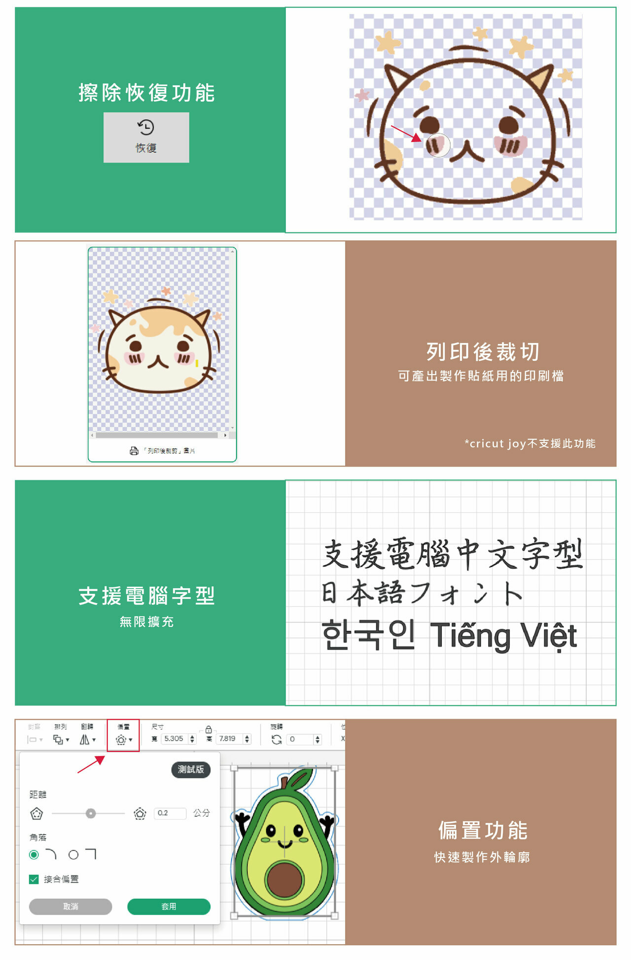 無論是要製作賀卡送給親友、家裡或辦公室的個人化裝飾,或是團服,你現在能隨心所欲做出精美創意作品。