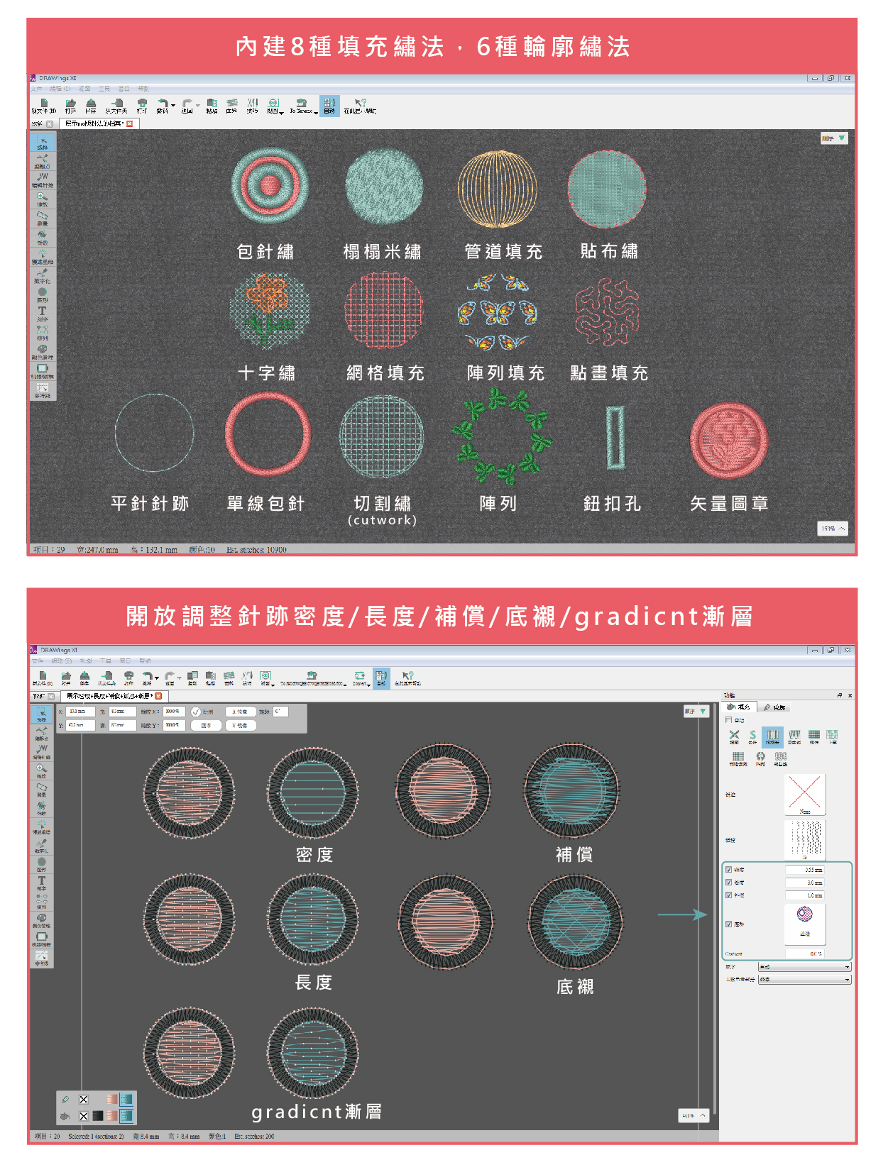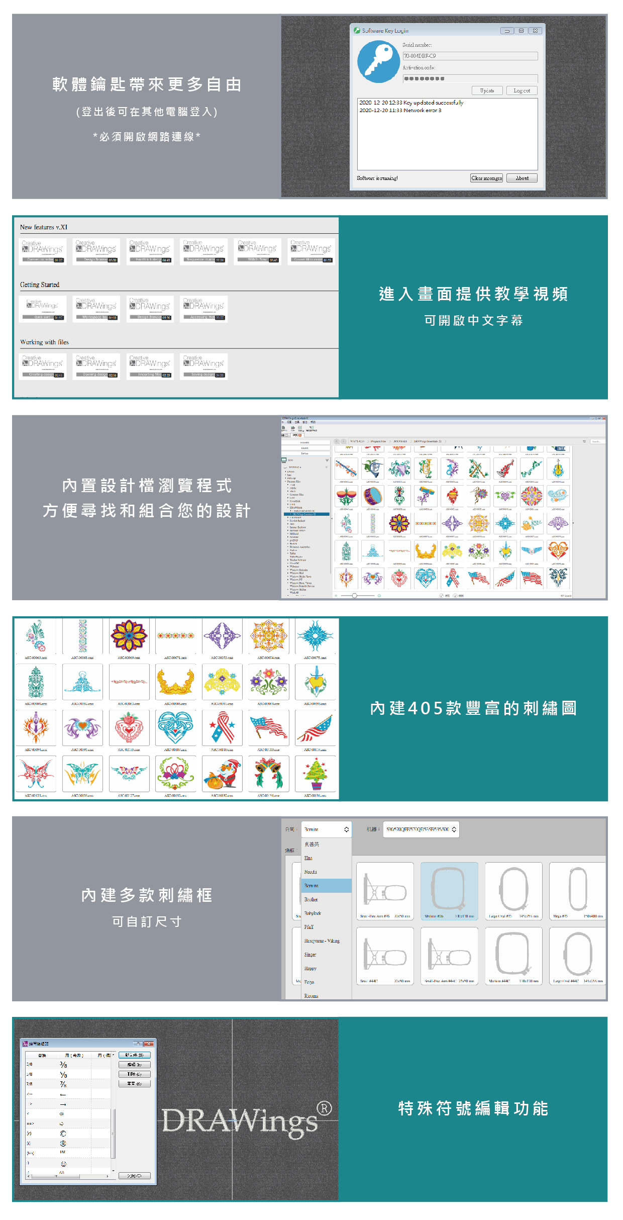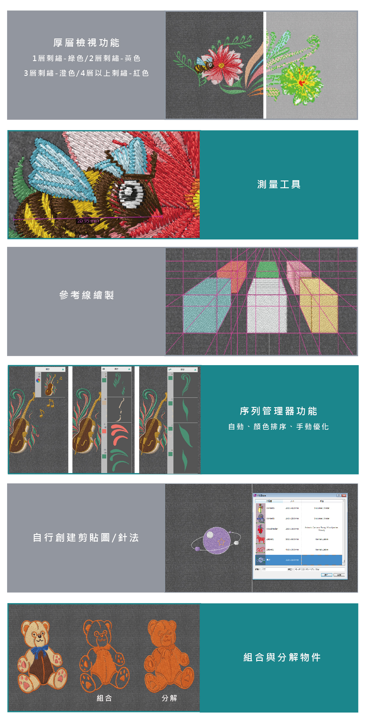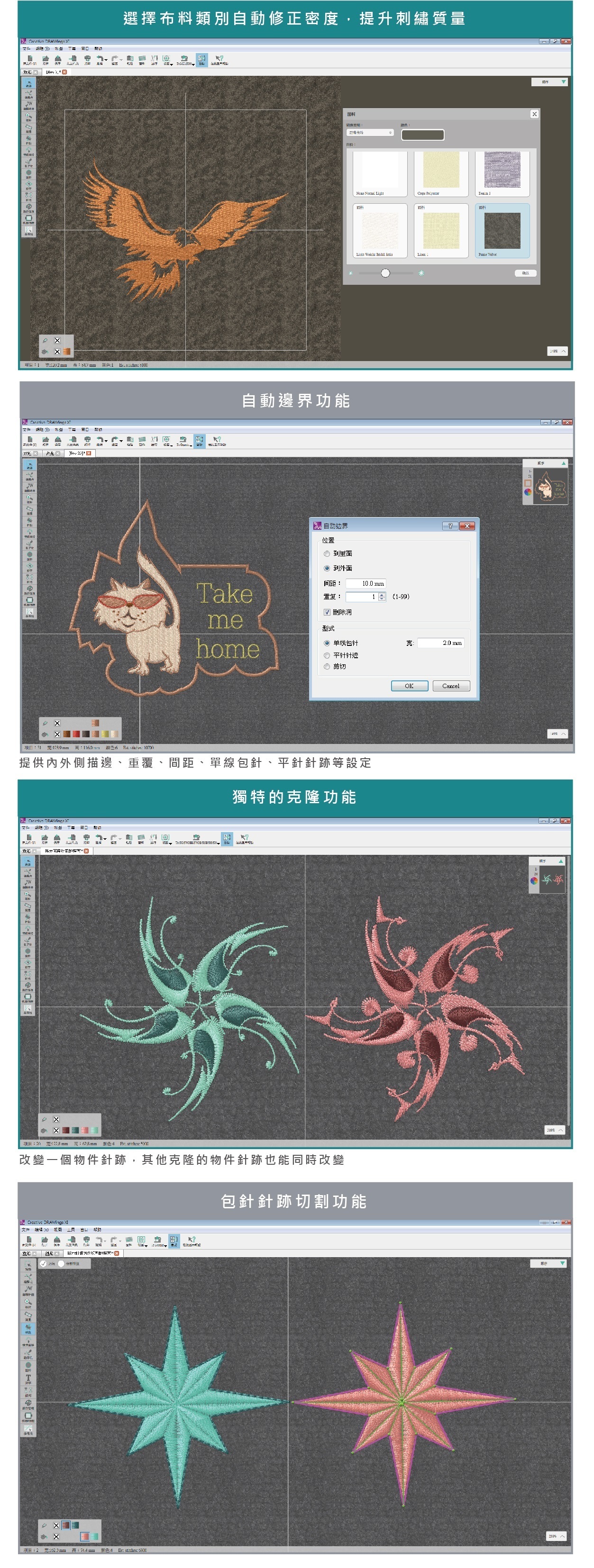 ●支援各大廠牌刺繡機 ●支援儲存、讀取多種檔案格式