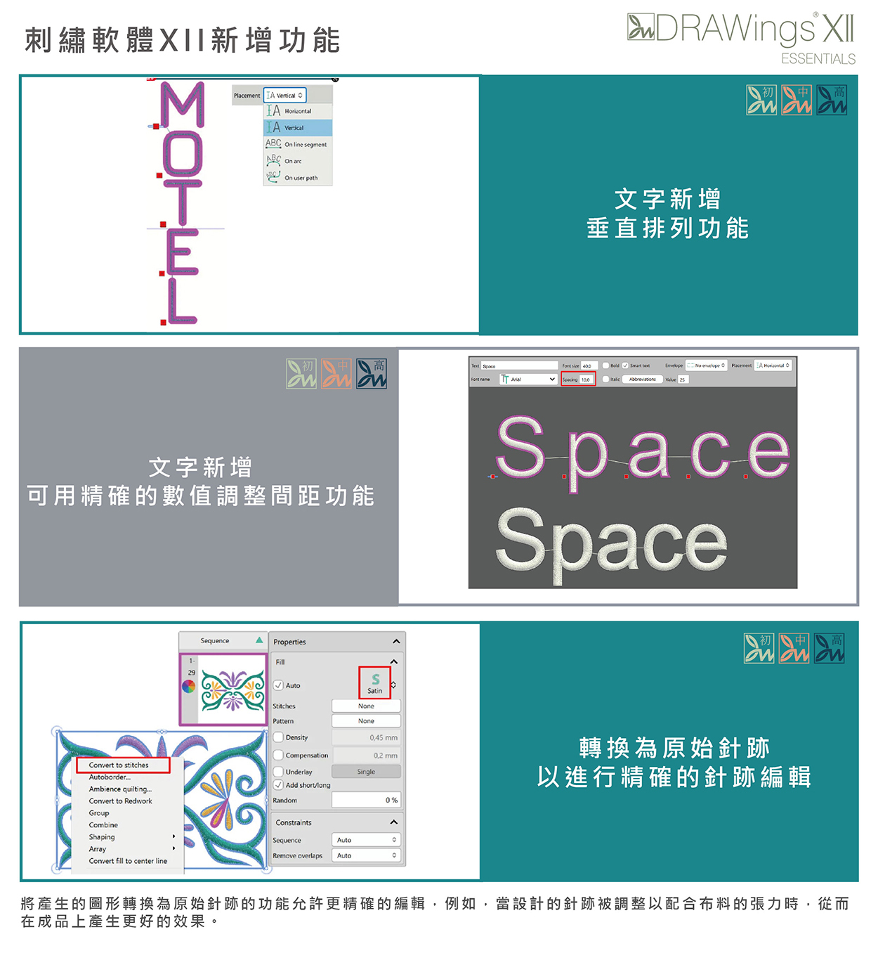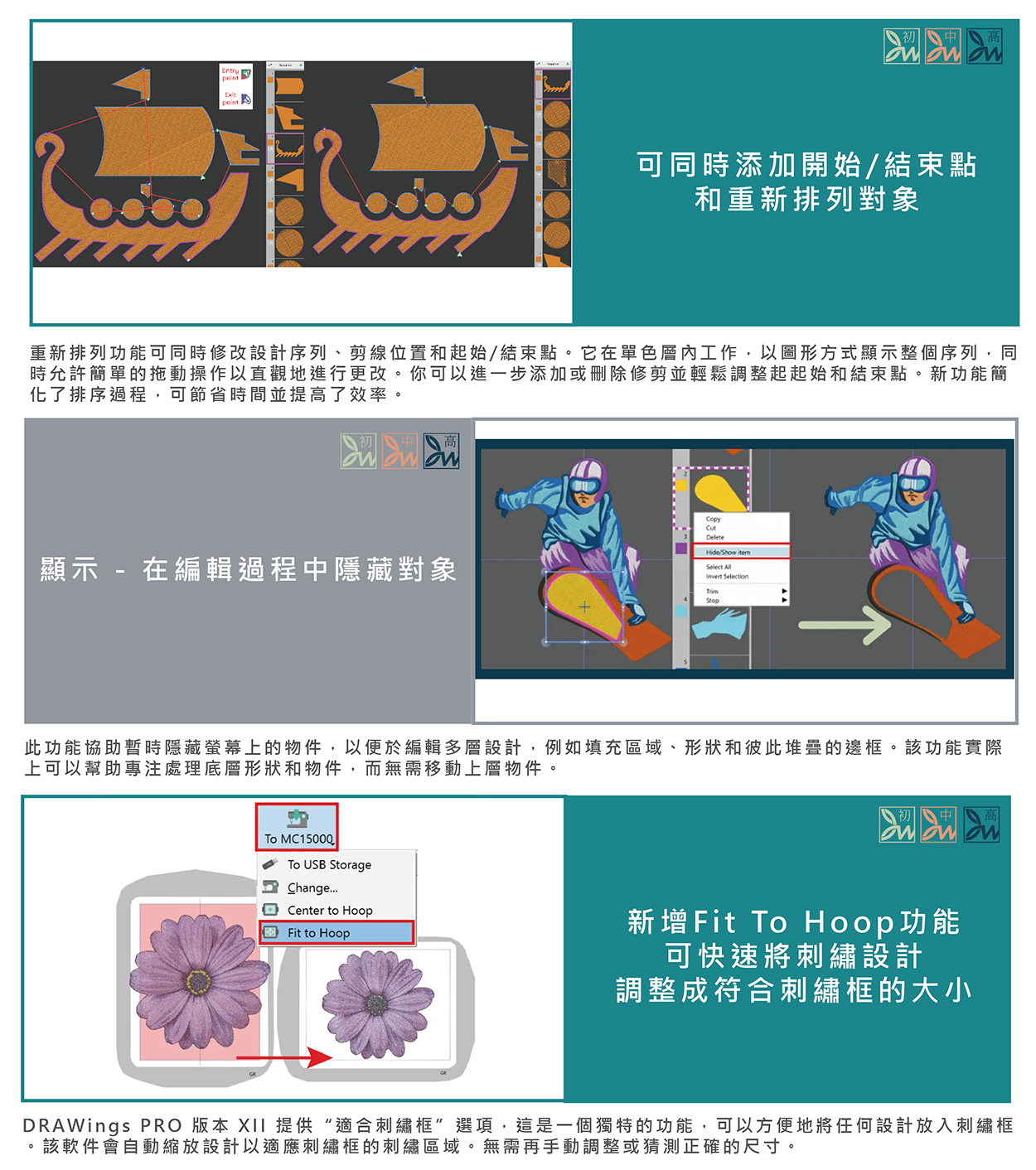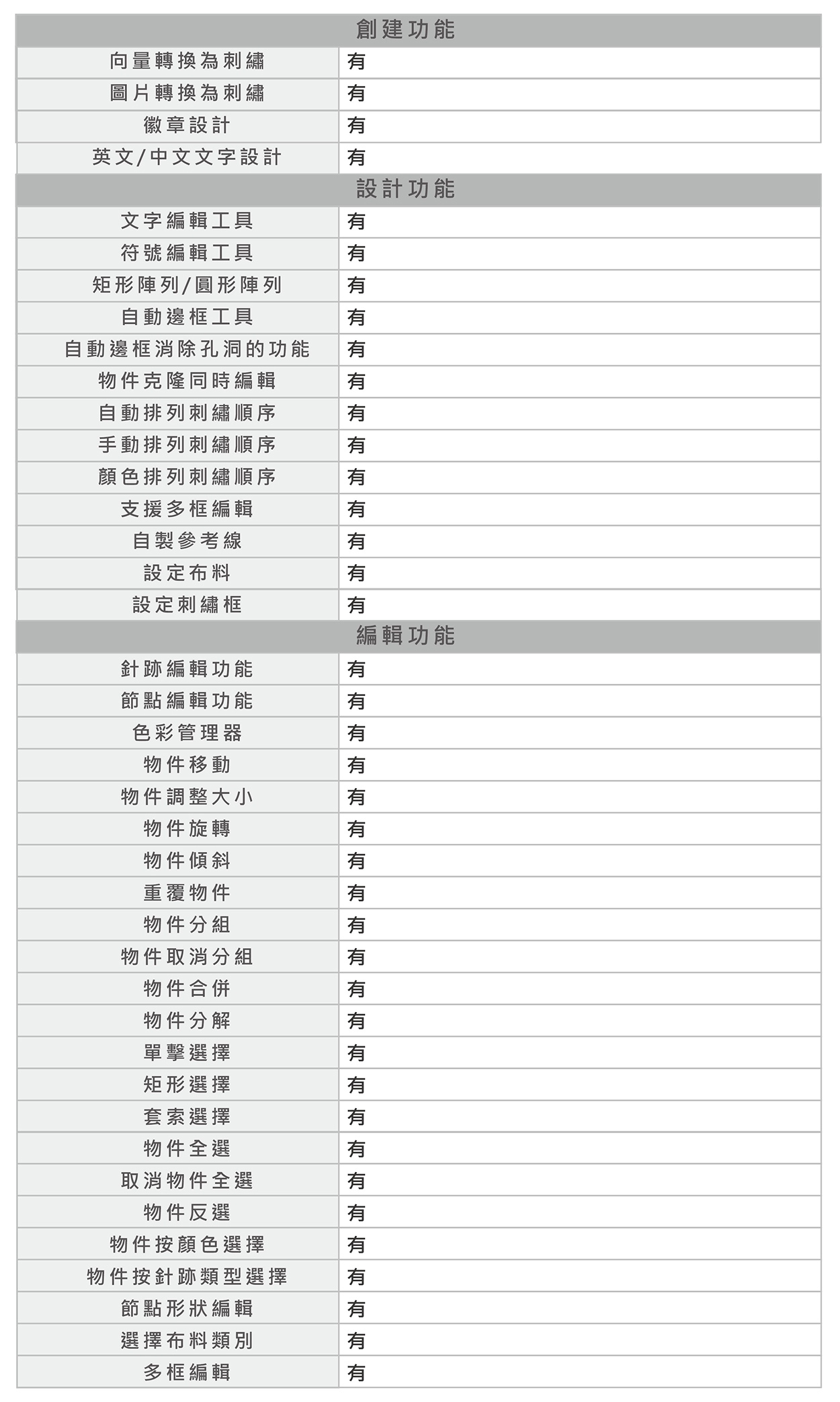 ●支援各大廠牌刺繡機 ●支援儲存、讀取多種檔案格式