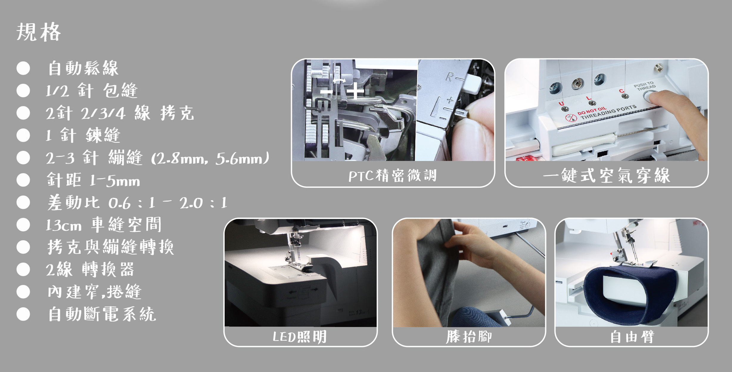 巧臂設計,縫製袖口、褲管更便利