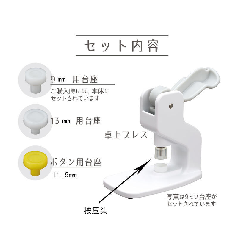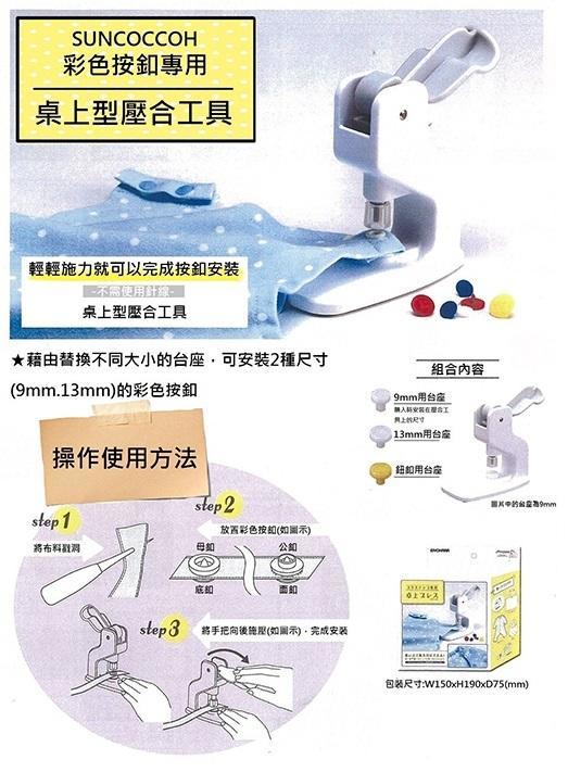 內涵:桌上型壓合工具、13mm用壓釦台座、9mm用壓釦台座