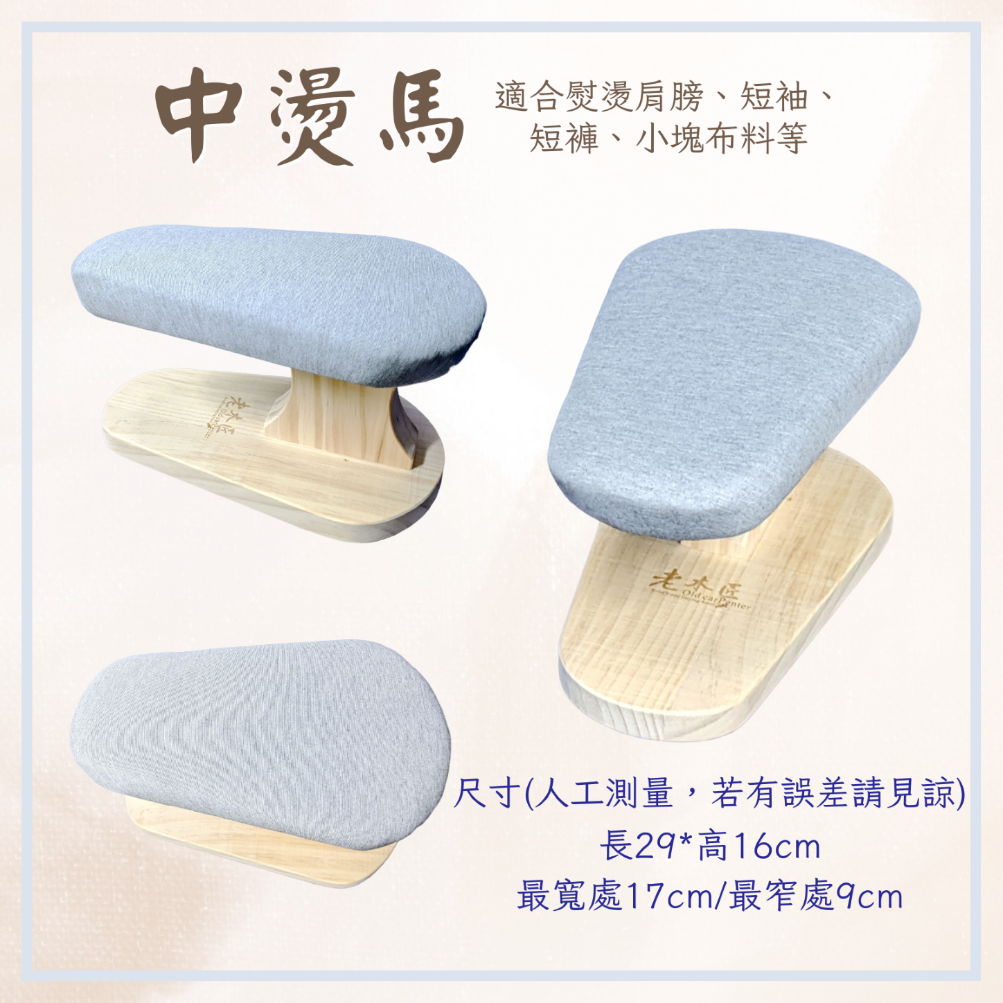 無論是窄長的袖口還是難熨燙的圓弧領口,使用木製燙馬都能輕鬆熨燙囉!